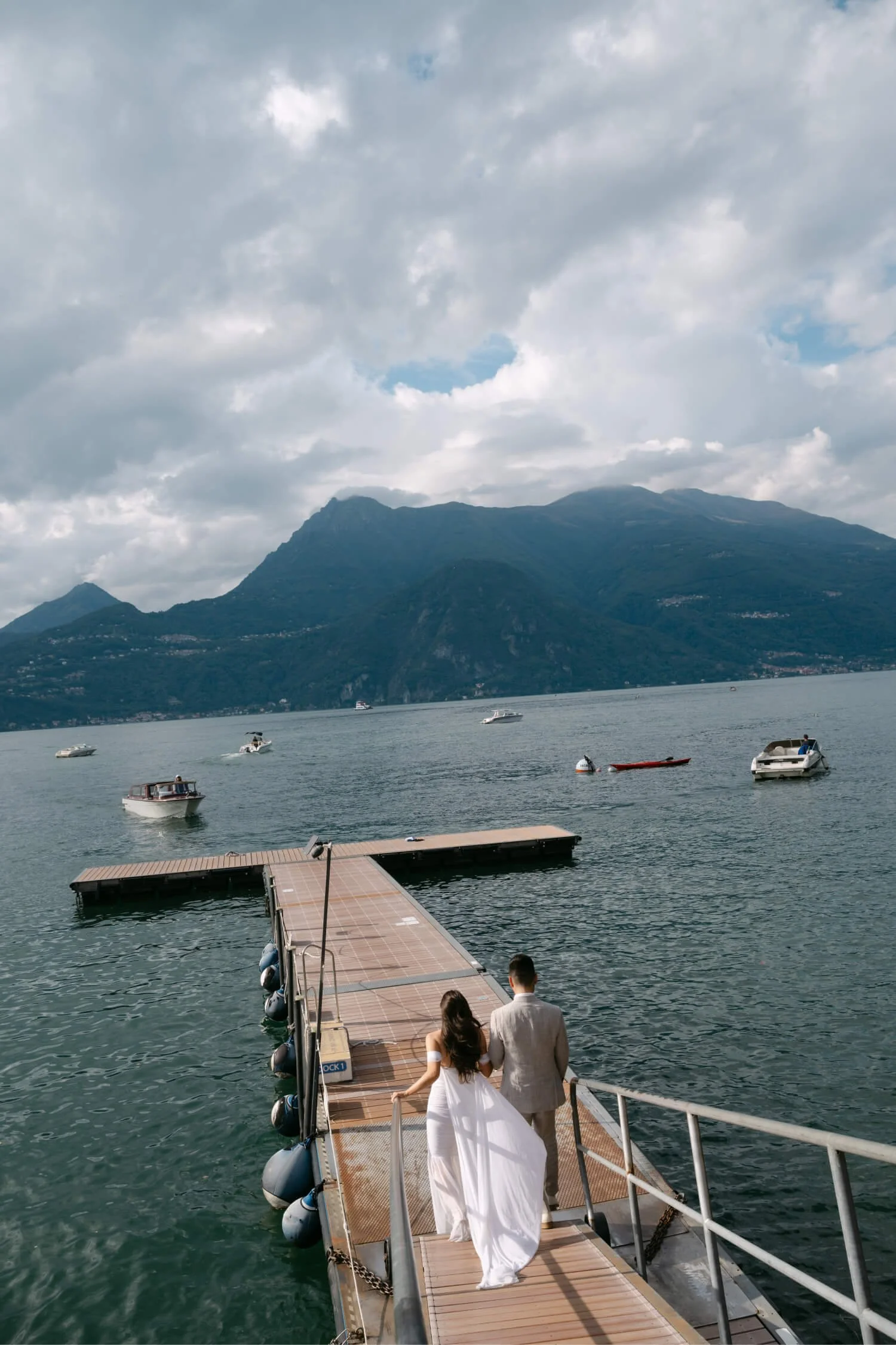 Starting from Hotel Villa Flori and heading out for a boat ride, with the Dolomites and small italian villages in the background, this two hours engagement photoshoot is a perfect blend of elegance, joy, and unforgettable moments.